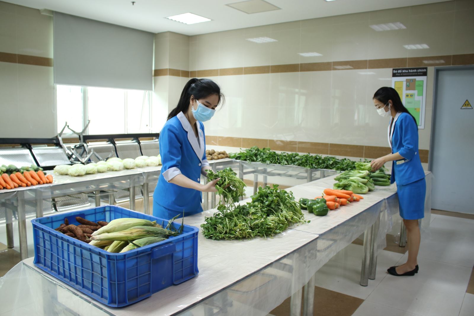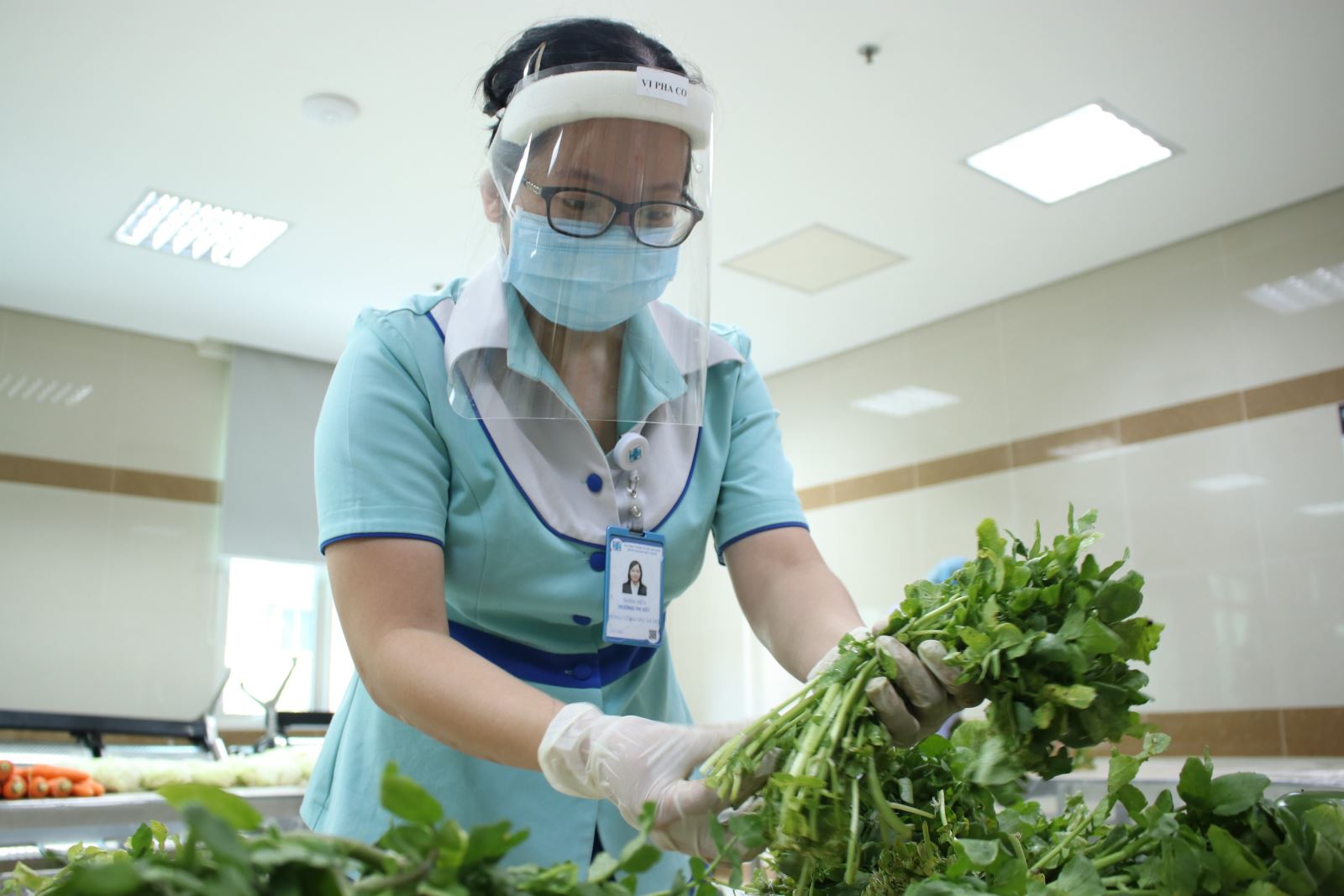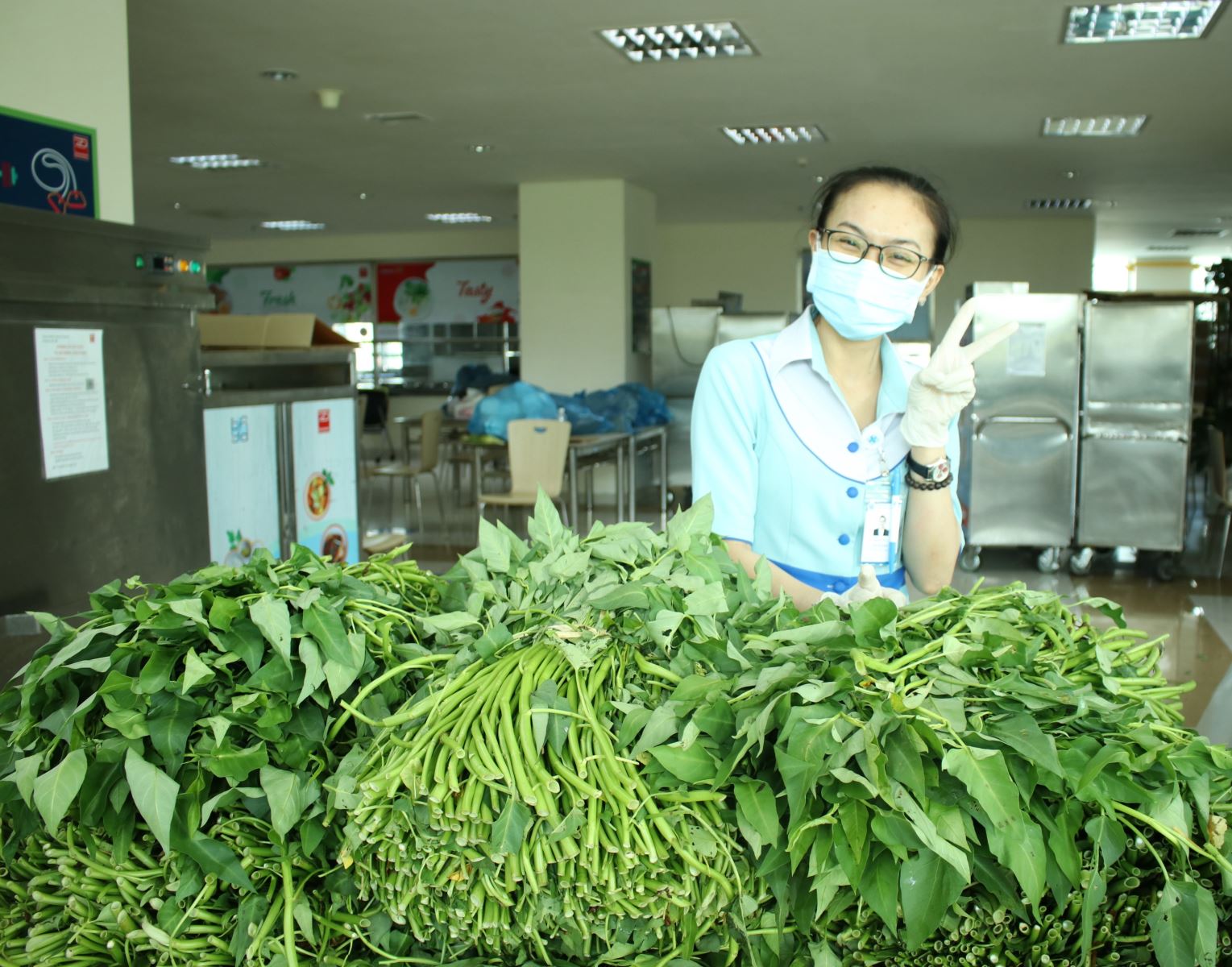 “Siêu thị được tổ chức ngay trong khuôn viên Bệnh viện, phục vụ liên tục các ngày trong tuần, các mặt hàng rau, củ, quả được lựa chọn kỹ lưỡng, an toàn, vệ sinh, đảm bảo nhân viên và gia đình được sử dụng rau sạch, rau tươi mỗi ngày.” – Chị Trương Thị Kết – Nhân viên Phòng Công tác xã hội Bệnh viện vừa chăm chút từng bó rau vừa chia sẻ.