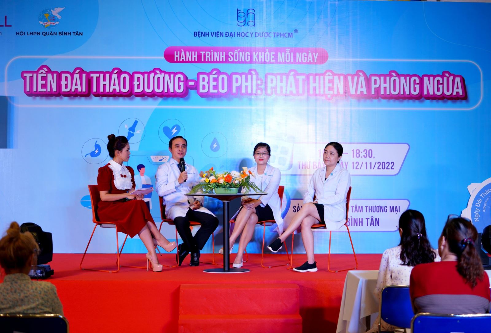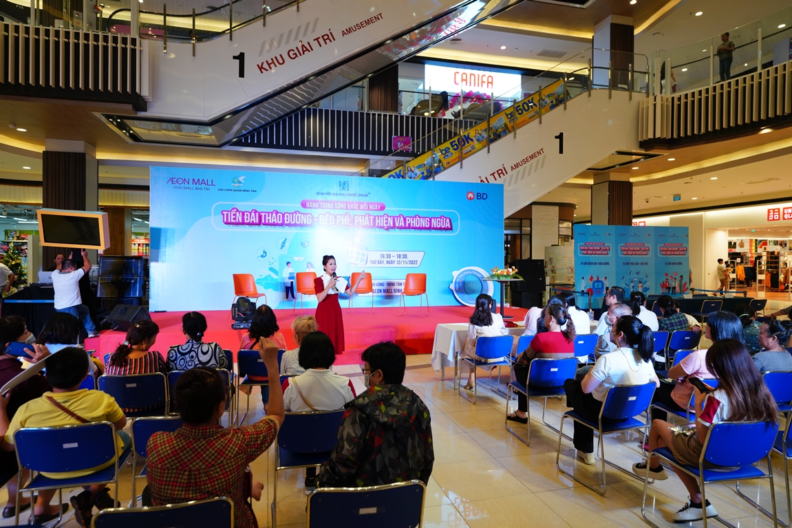 Ngày 12/11/2022 vừa qua, Bệnh viện Đại học Y Dược TPHCM (BV ĐHYD TPHCM) phối hợp cùng Văn phòng Đại diện Becton Dickinson Việt Nam, Hội Liên hiệp Phụ nữ quận Bình Tân và Trung tâm thương mại Aeon Mall Bình Tân tổ chức chương trình Hành trình sống khỏe mỗi ngày lần thứ 4. Chương trình thuộc chuỗi các hoạt động hưởng ứng ngày Đái tháo đường thế giới 2022 của BV ĐHYD TPHCM, giúp nâng cao kiến thức cộng đồng trong việc tầm soát, phòng ngừa tiền đái tháo đường - béo phì. Chương trình thu hút hàng trăm người tham dự trực tiếp và hàng nghìn lượt theo dõi trực tuyến trên Fanpage BV ĐHYD TPHCM.