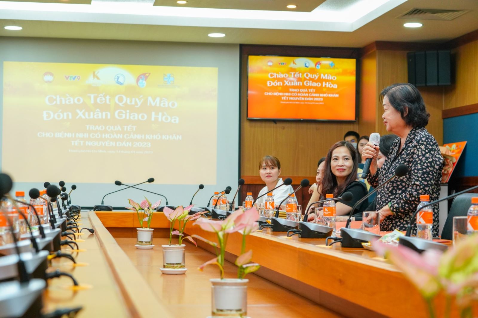 Đại diện Bệnh viện, TS BS. Phạm Văn Tấn cảm ơn tình cảm chân thành của Bà Trương Mỹ Hoa và Bà Đặng Thị Kim Oanh cùng những phần quà dành tặng cho người bệnh, đặc biệt là bệnh nhi có hoàn cảnh khó cảnh khó khăn, để mọi người đón được cái Tết Quý Mão 2023 vui vẻ, hạnh phúc. Nhân dịp Xuân về, TS BS. Phạm Văn Tấn cũng gửi lời chúc sức khỏe, thành công đến Bà Trương Mỹ Hoa và Bà Đặng Thị Kim Oanh, hi vọng sẽ ngày càng có nhiều chương trình thiết thực hơn nữa dành cho người bệnh, người nhà người bệnh.