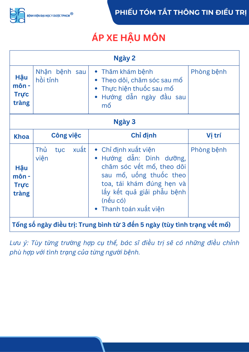 Tóm tắt thông tin điều trị áp xe hậu môn
