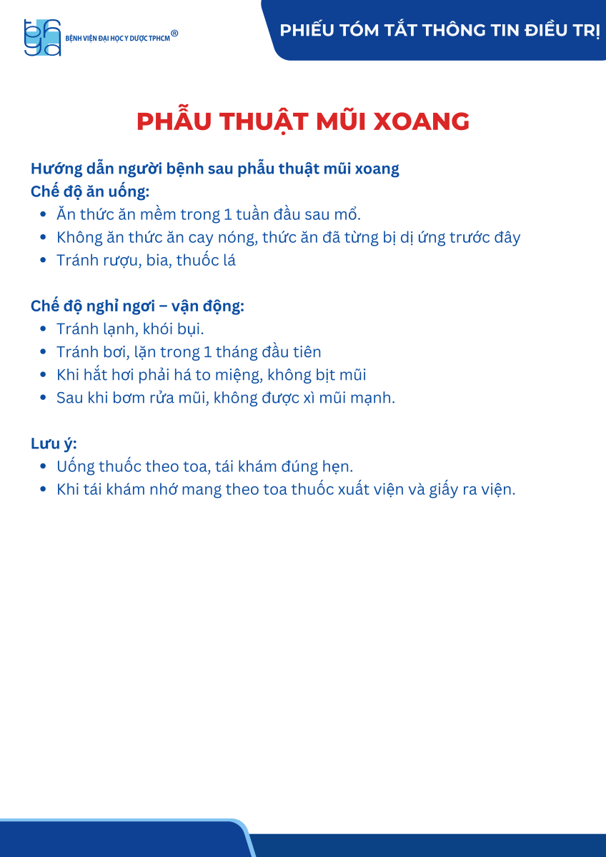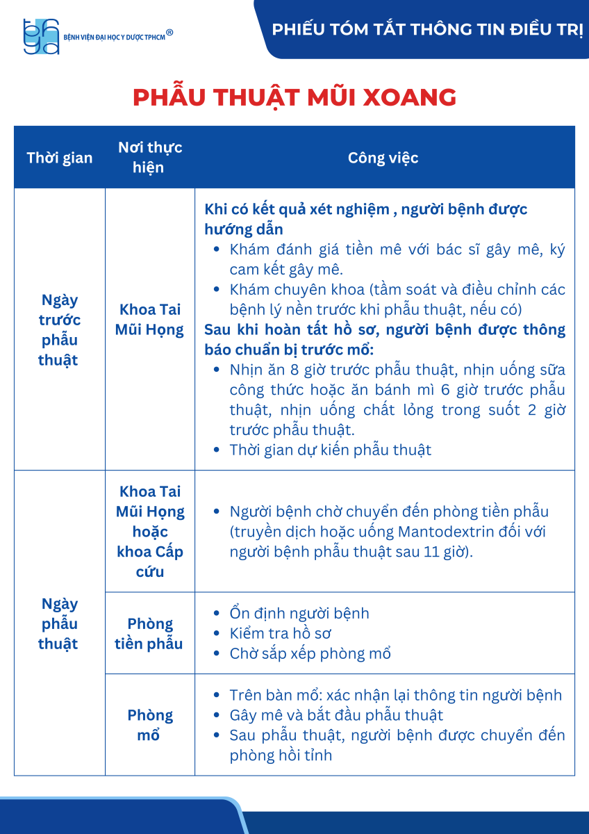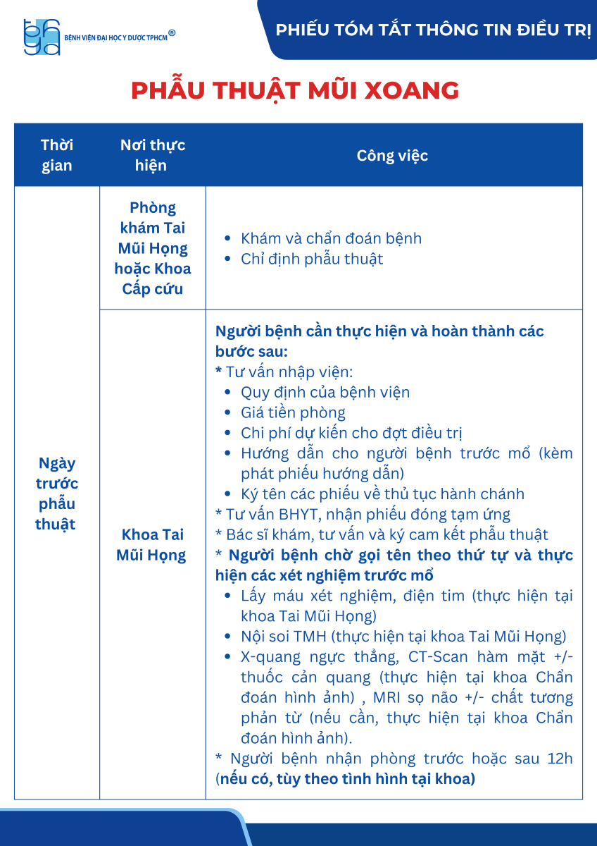 Phiếu tóm tắt thông tin điều trị viêm mũi xoang có phẫu thuật