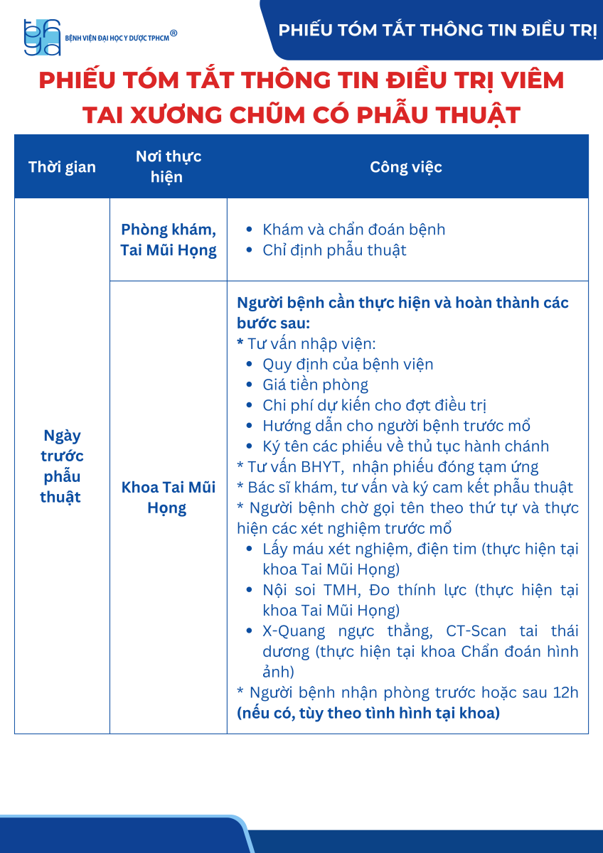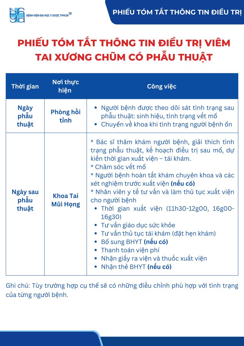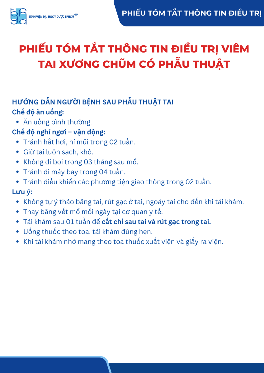 Phiếu tóm tắt thông tin điều trị viêm tai xương chũm có phẫu thuật