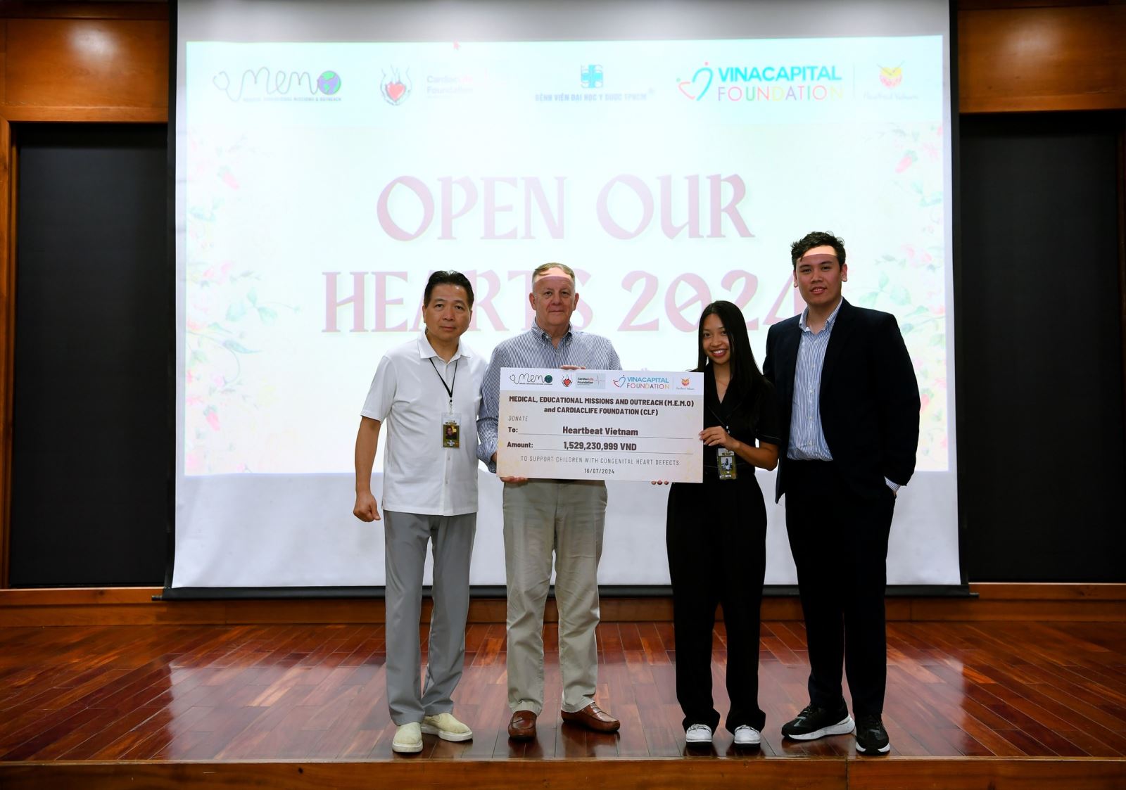Trong buổi gặp mặt, đại diện VinaCapital Foundation và MEMO đã trao tặng gần 1,6 tỉ VNĐ để hỗ trợ phẫu thuật tim cho 21 em nhỏ trong năm 2024, mang lại những hy vọng và cơ hội sống mới cho các gia đình.