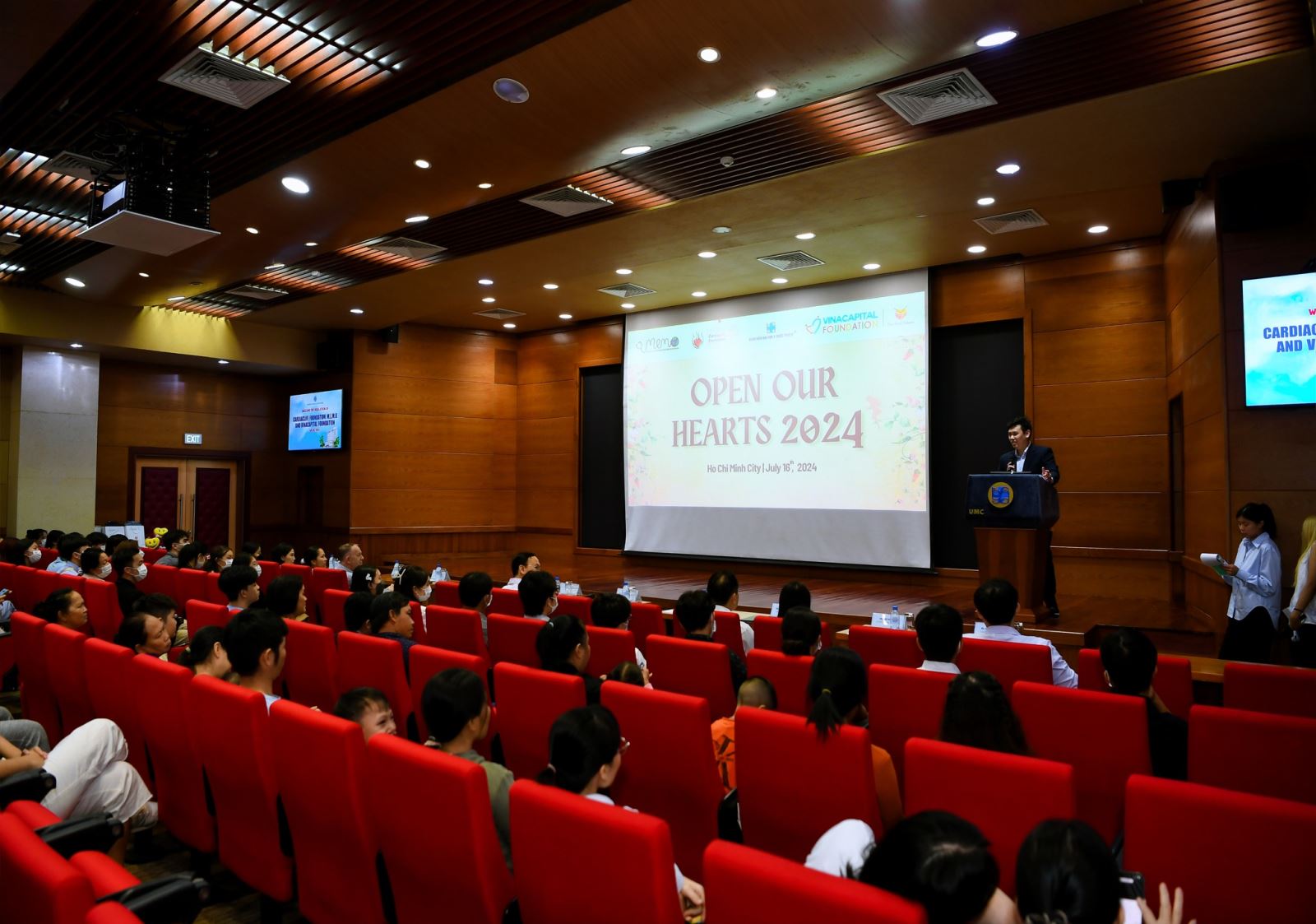Phát biểu khai mạc, PGS TS BS. Nguyễn Hoàng Định - Phó Giám đốc Bệnh viện, nhấn mạnh: "Bệnh viện là ngôi nhà chung của chúng ta. Chúng tôi rất biết ơn sự đồng hành của các bạn trong việc giúp đỡ trẻ em bị tim bẩm sinh. Hi vọng các bạn sinh viên có 3 ngày trải nghiệm kiến tập ý nghĩa tại BV ĐHYD TPHCM."