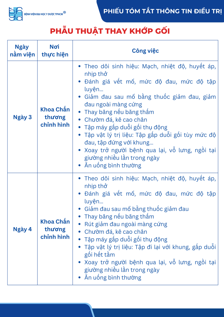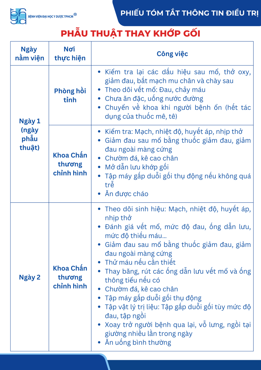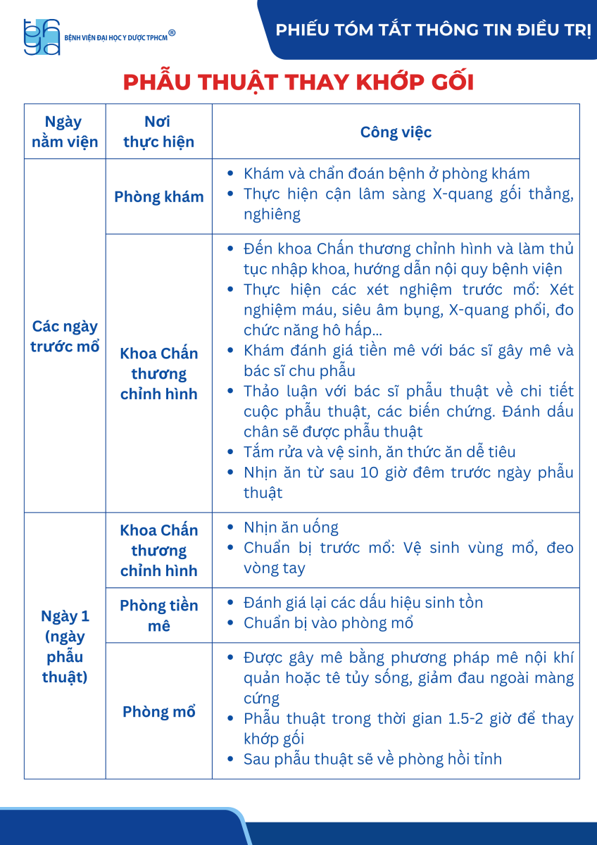 Phiếu tóm tắt thông tin điều trị phẫu thuật thay khớp gối