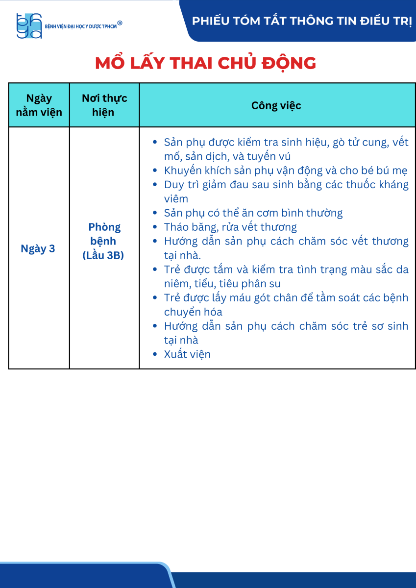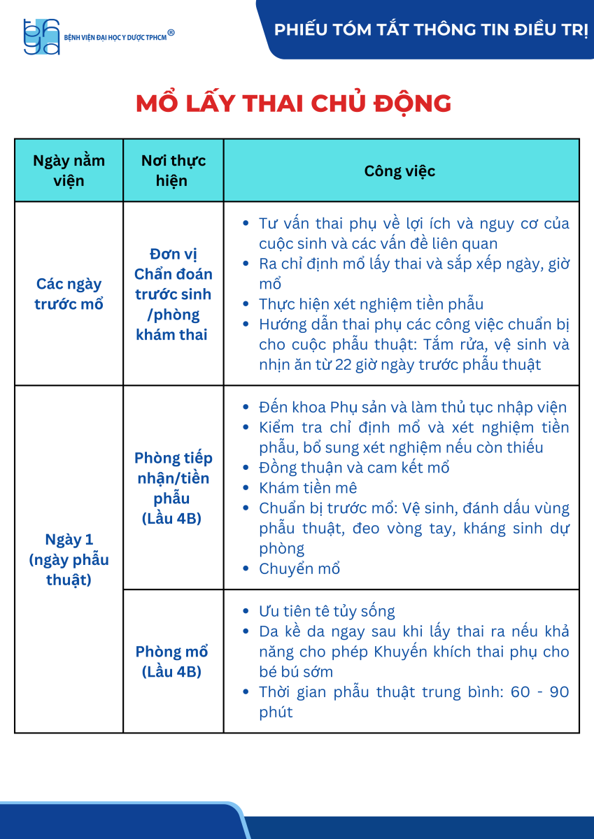 Phiếu tóm tắt thông tin điều trị mổ lấy thai chủ động