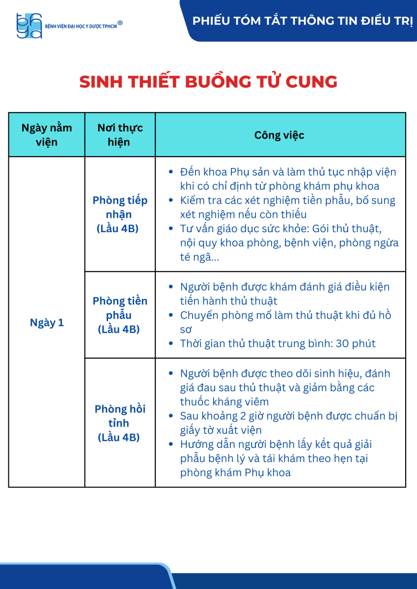 Phiếu tóm tắt thông tin điều trị sinh thiết buồng tử cung