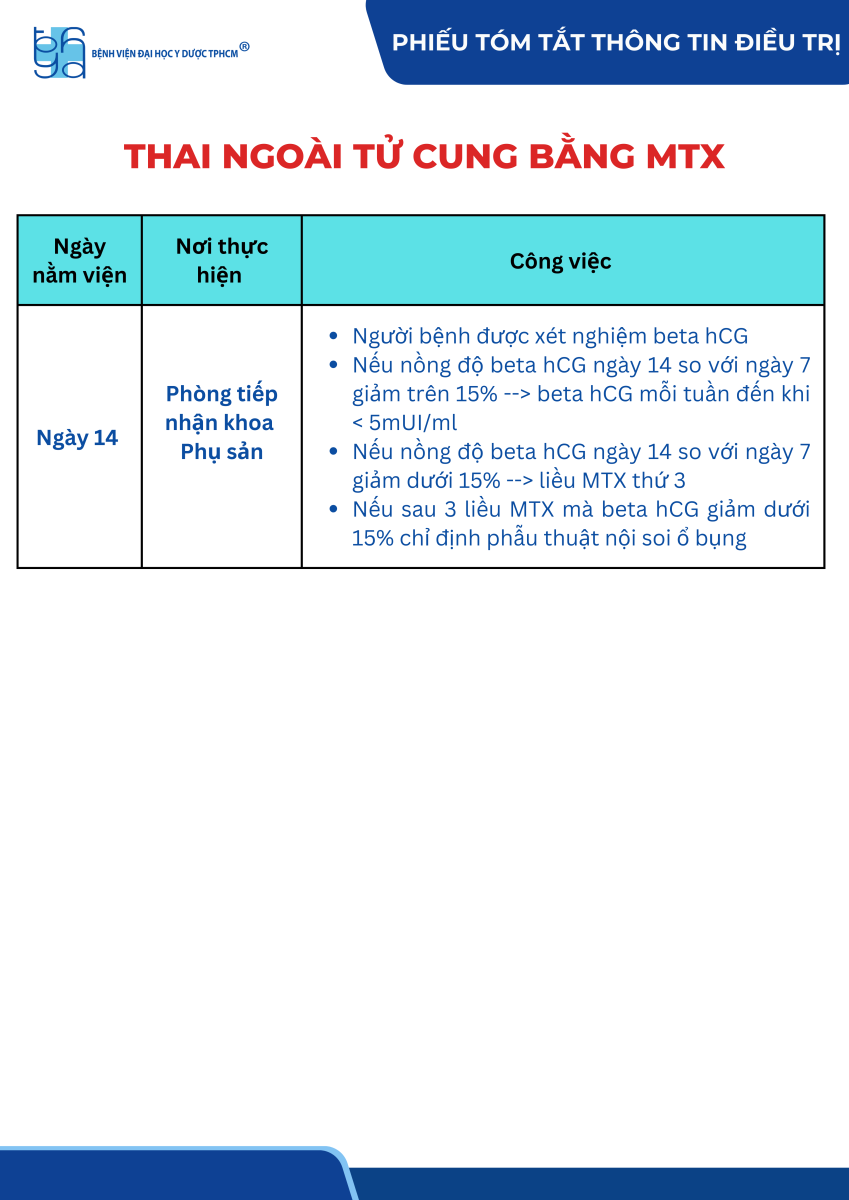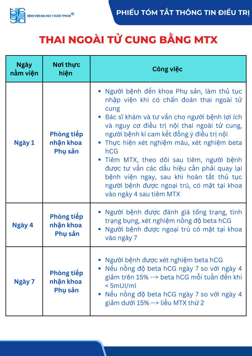 Phiếu tóm tắt thông tin điều trị thai ngoài tử cung bằng MTX