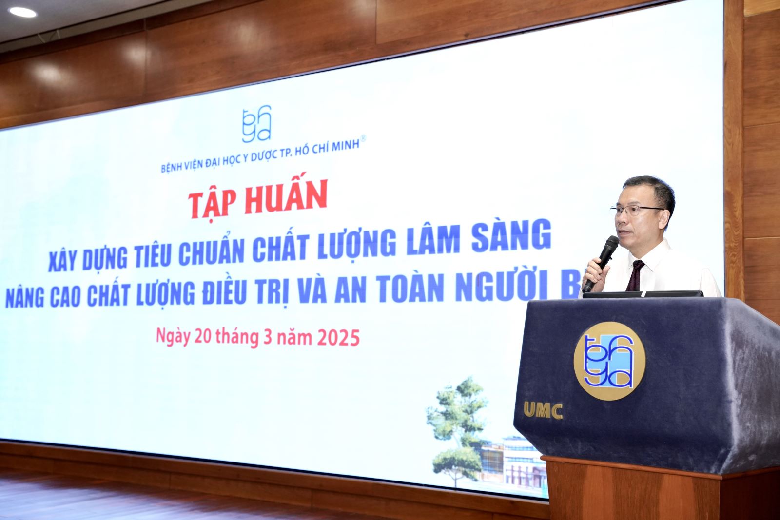 Phát biểu khai mạc, PGS TS BS. Nguyễn Hoàng Định - Phó Giám đốc BV ĐHYD nhấn mạnh tầm quan trọng của việc xây dựng và áp dụng tiêu chuẩn chất lượng lâm sàng trong thực hành y khoa, "Trong thực hành hàng ngày, mỗi bệnh lý, mỗi quy trình điều trị đều cần có tiêu chí đánh giá chất lượng và hiệu quả. Trên thế giới, nhiều hiệp hội y khoa lớn đã xây dựng các bộ tiêu chí để đo lường và cải tiến chất lượng điều trị. Tại Việt Nam, Bộ Y tế cũng đang từng bước chuẩn hóa và phát triển các tiêu chí lâm sàng phù hợp với thực tiễn. Việc triển khai tập huấn hôm nay chính là một bước quan trọng nhằm áp dụng các tiêu chí này vào thực tế, hướng tới nâng cao chất lượng khám chữa bệnh trên toàn hệ thống.".
