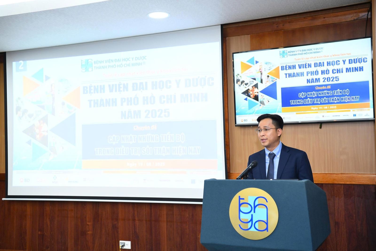 Sáng ngày 19/8/2025, trong khuôn khổ Tuần lễ cập nhật kiến thức y khoa liên tục năm 2025, Bệnh viện Đại học Y Dược TP. Hồ Chí Minh (BV ĐHYD) tổ chức Hội thảo chuyên đề Tiết niệu với chủ đề “Kiểm soát tai biến và phòng ngừa sỏi tiết niệu tái phát”. Sự kiện thu hút hơn 150 bác sĩ, điều dưỡng và học viên chuyên ngành tiết niệu, thận học từ khắp cả nước, tập trung vào ba vấn đề then chốt: công nghệ điều trị ít xâm lấn, kiểm soát tai biến và chiến lược ngăn ngừa tái phát.