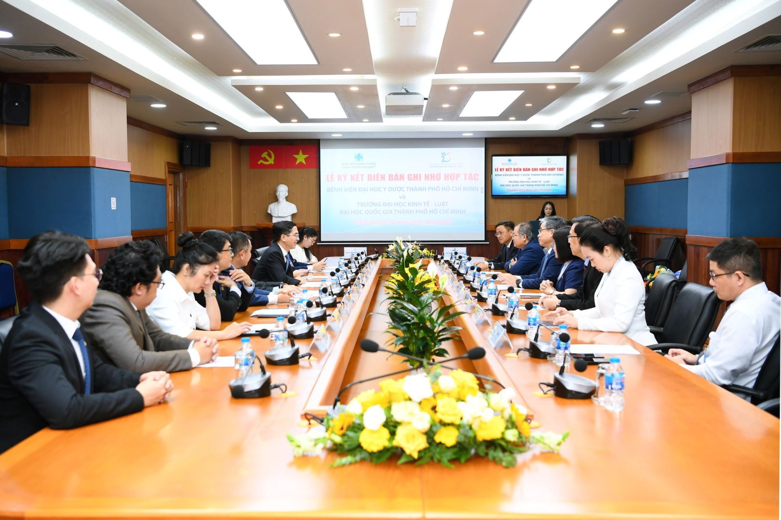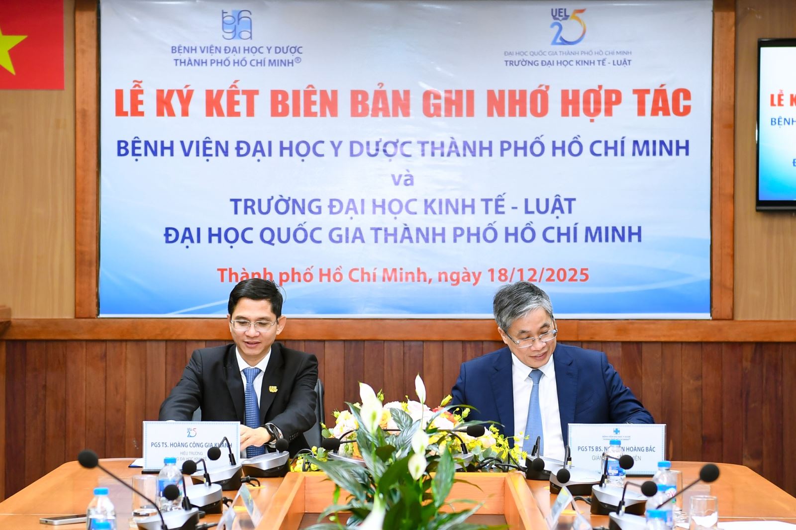 Sáng ngày 18/12/2025, Bệnh viện Đại học Y Dược TP. Hồ Chí Minh (BV ĐHYD) đã tổ chức Lễ ký kết Biên bản ghi nhớ hợp tác với Trường Đại học Kinh tế – Luật, Đại học Quốc gia TP. Hồ Chí Minh (UEL). Sự kiện đánh dấu bước phát triển mới trong mối quan hệ hợp tác liên ngành, hướng đến kết nối y tế với kinh tế, quản trị và pháp lý, góp phần nâng cao hiệu quả quản trị hệ thống y tế trong bối cảnh đổi mới và hội nhập.