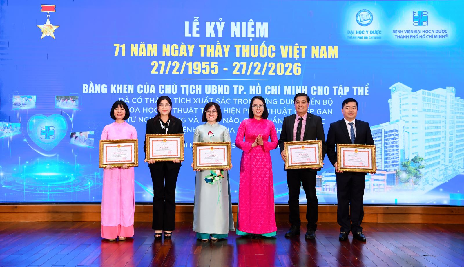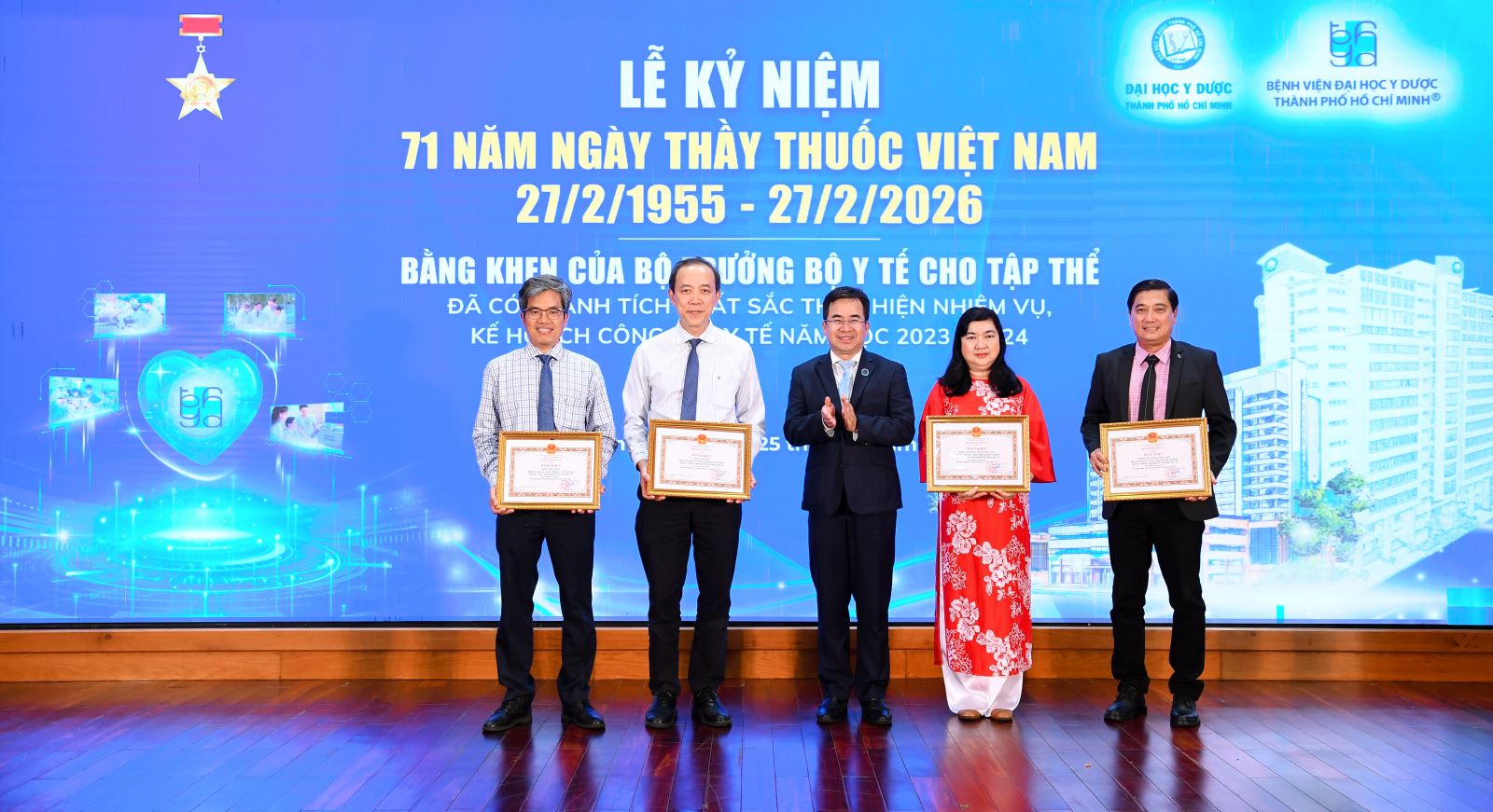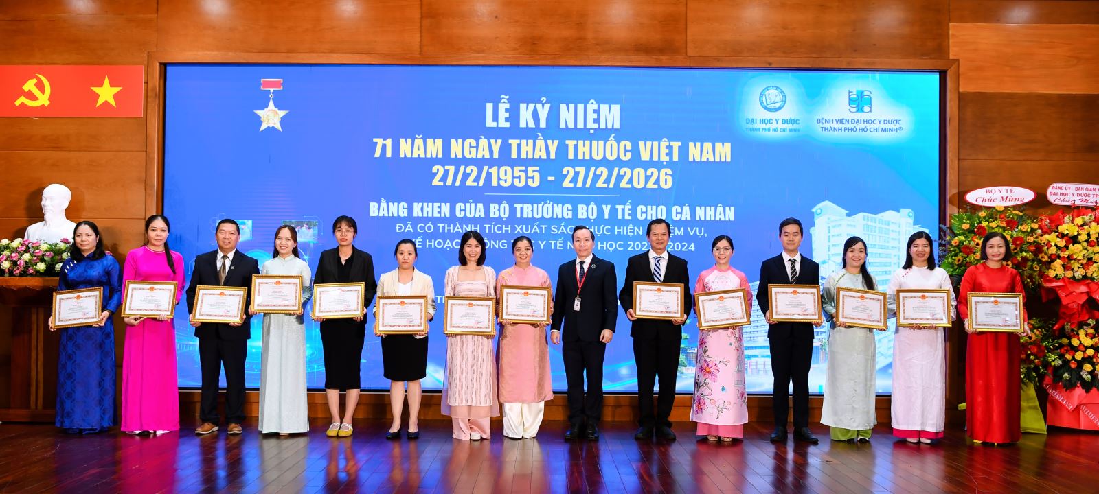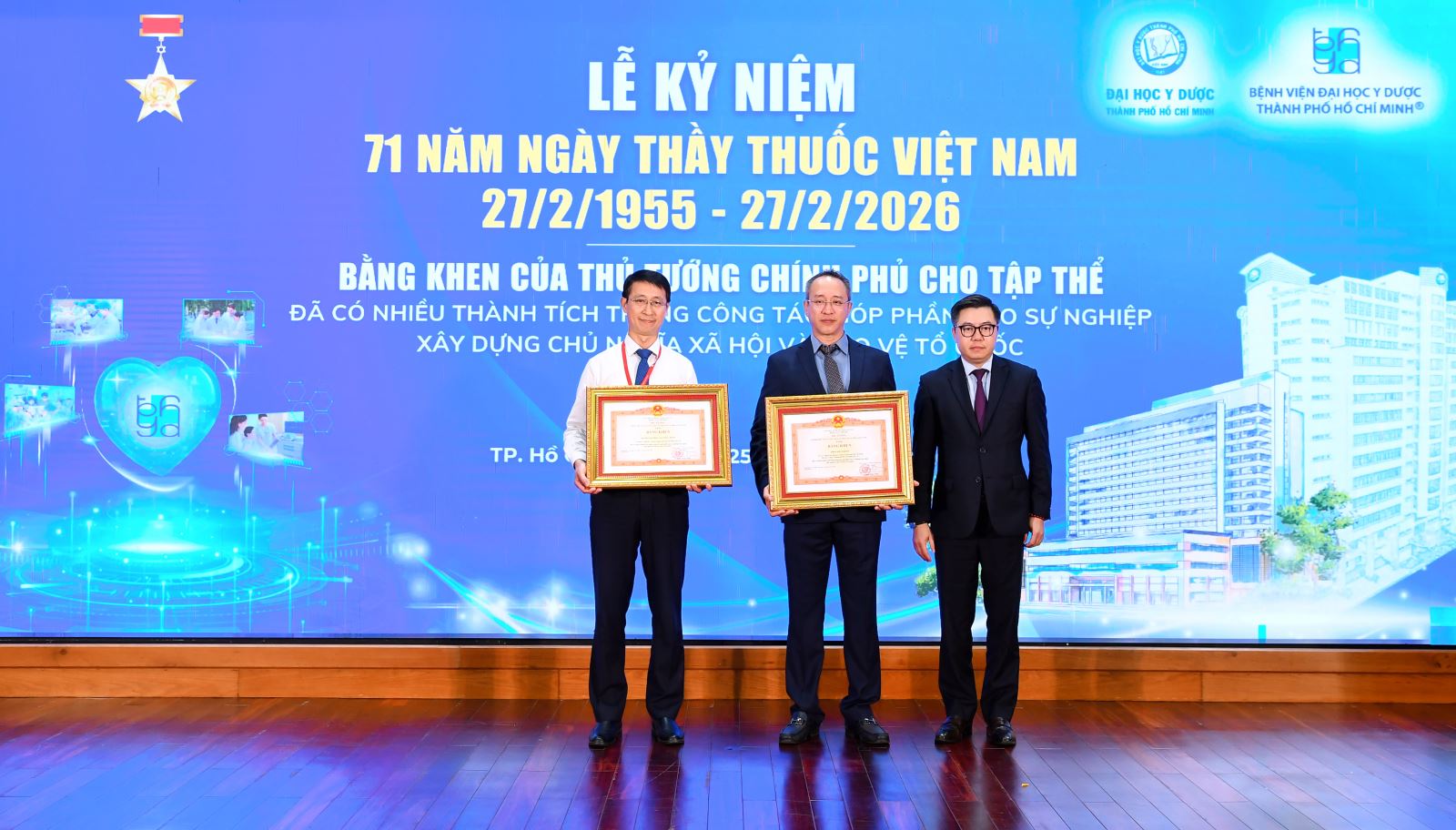 Tại buổi lễ, nhiều tập thể và cá nhân tiêu biểu, có thành tích xuất sắc, đóng góp tích cực cho sự phát triển của Nhà trường và Bệnh viện đã được Thủ tướng Chính phủ, Bộ trưởng Bộ Y tế, Chủ tịch Ủy ban nhân dân Thành phố Hồ Chí Minh tặng bằng khen. Những phần thưởng cao quý không chỉ là sự ghi nhận cho những nỗ lực bền bỉ mà còn tiếp thêm động lực để tập thể Bệnh viện tiếp tục đổi mới, nâng cao chất lượng chuyên môn và phục vụ người bệnh ngày càng tốt hơn.