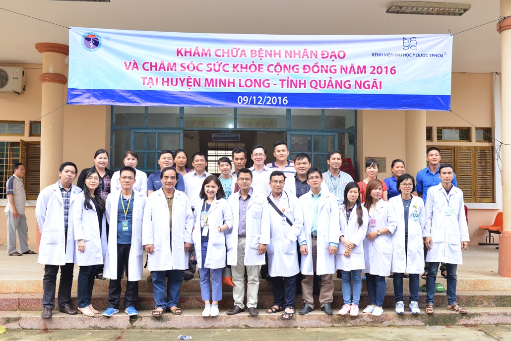Từ ngày 08 – 11/12/2016, Bệnh viện Đại học Y Dược TPHCM (BV ĐHYD) tổ chức chương trình khám chữa bệnh, phát thuốc miễn phí và tặng quà cho 2.000 người dân tại 02 huyện miền núi Minh Long và Sơn Tây, tỉnh Quảng Ngãi. Đây là hoạt động nằm trong chương trình khám, chữa bệnh nhân đạo và chăm sóc sức khỏe cộng đồng năm 2016 của Bộ Y tế với chủ đề “Chung sức hành động, vì sức khỏe cộng đồng”.