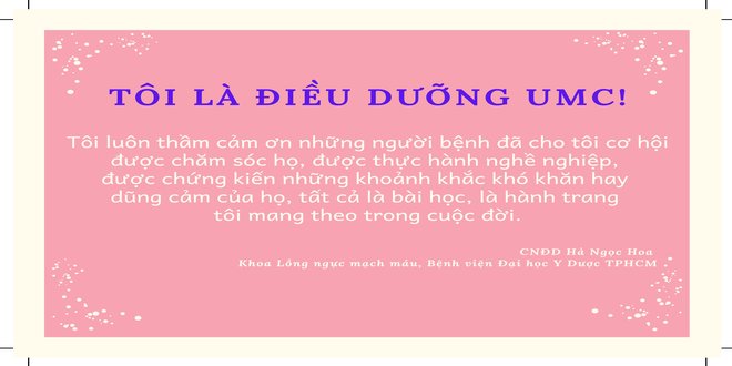 Tôi luôn thầm cảm ơn những người bệnh đã cho tôi cơ hội được chăm sóc họ, được thực hành nghề nghiệp, được chứng kiến những khoảnh khắc khó khăn hay dũng cảm của họ, tất cả là bài học là hành trang tôi mang theo trong cuộc đời.