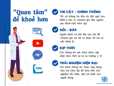 Bệnh viện Đại học Y Dược TPHCM (BV ĐHYD TPHCM) đã hoàn thiện hệ thống các kênh truyền thông kỹ thuật số để truyền tải thông tin giáo dục sức khỏe với tiêu chí Tin cậy - Kịp thời – Đúng đối tượng.