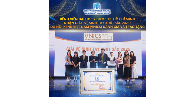 Ngày 21/9/2025, tại Hội nghị Khoa học của Hội Kiểm soát Nhiễm khuẩn TP. hồ Chí Minh, Bệnh viện Đại học Y Dược TP. Hồ Chí Minh (BV ĐHYD) được vinh danh Giải thưởng “Vệ sinh tay xuất sắc năm 2025”.