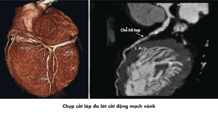 Sau khi tiêm vào tĩnh mạch một chất cản quang cùng một số thuốc chọn lọc, bệnh nhân được chụp với một máy cắt lớp hiện đại để có được một hình ảnh 3D của tim và các mạch máu nuôi tim (mạch vành). Hình ảnh sắc nét và chi tiết nhất so với các phương pháp khác. Thời gian tiến hành chỉ mất khoảng 15 phút. Ngoài việc chẩn đoán hẹp ĐMV, có thể xác định bao nhiêu điểm bị xơ vữa cùng mức độ hẹp, có thể giúp dự báo các sự cố và diễn biến của bệnh ĐMV.