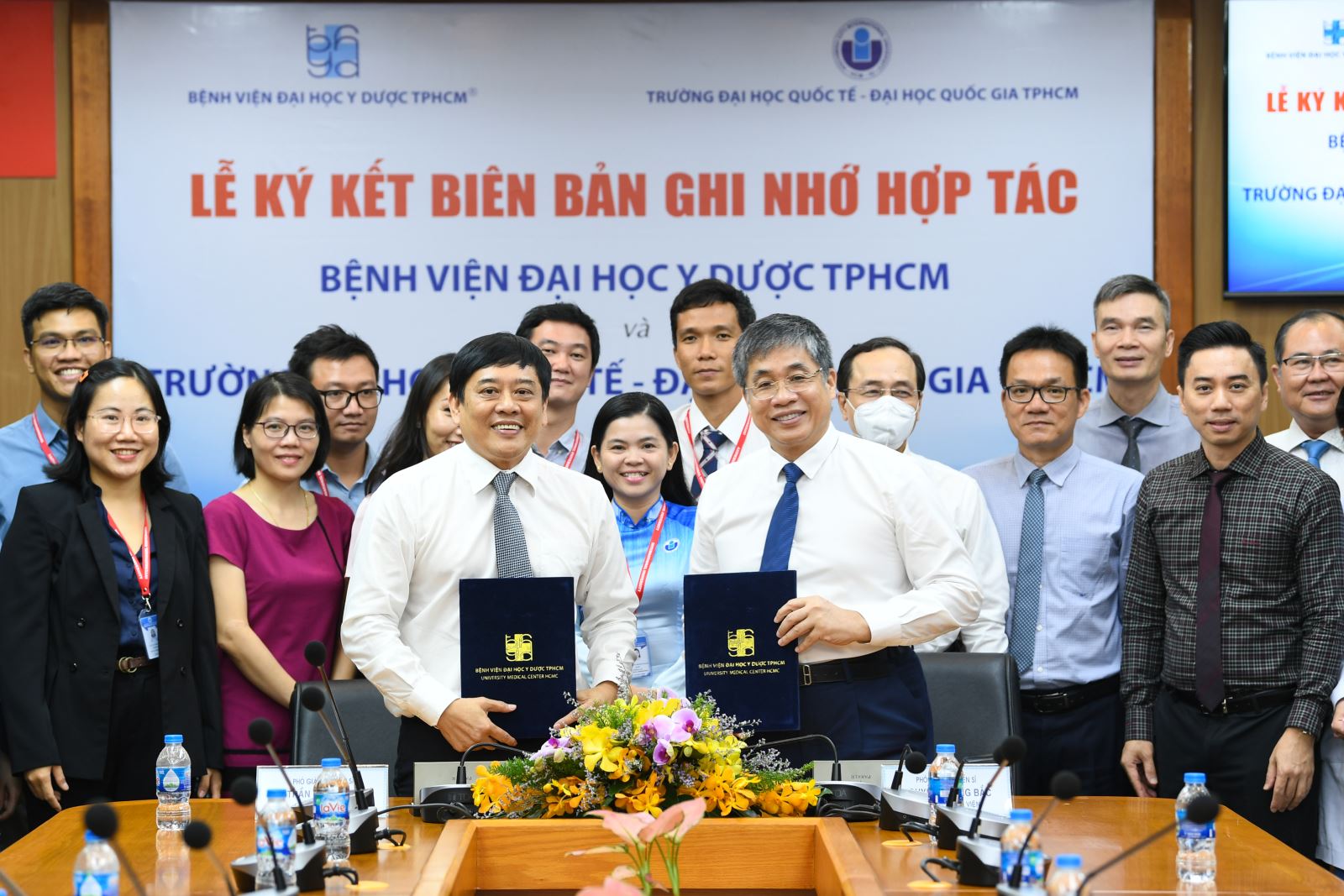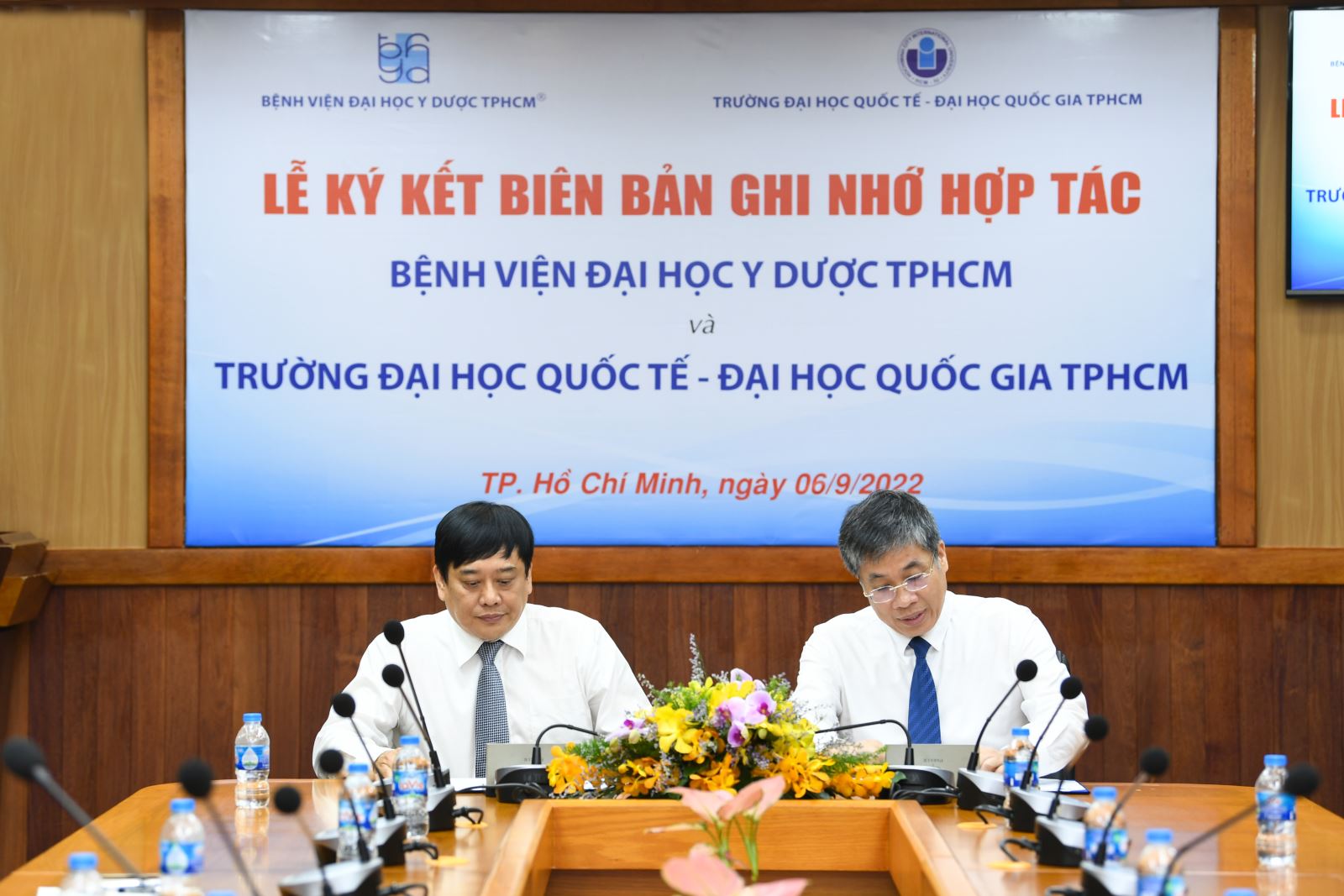 Ngày 06/9/2022, tại Bệnh viện Đại học Y Dược TPHCM (BV ĐHYD TPHCM) đã diễn ra lễ ký kết bản ghi nhớ giữa Bệnh viện và Trường Đại học Quốc tế - Đại học Quốc gia TPHCM. Đây là sự kiện nhằm thúc đẩy sự hợp tác giữa hai đơn vị trong lĩnh vực đào tạo, nghiên cứu khoa học, chuyển giao công nghệ và giao lưu học thuật. Tham dự chương trình có PGS TS BS. Nguyễn Hoàng Bắc – Giám đốc Bệnh viện, GS TS BS. Trương Quang Bình – Phó Giám đốc Bệnh viện và lãnh đạo các Phòng, Khoa. Về phía trường Đại học Quốc tế có PGS TS. Trần Tiến Khoa – Hiệu trưởng nhà trường và đại diện các bộ phận liên quan.