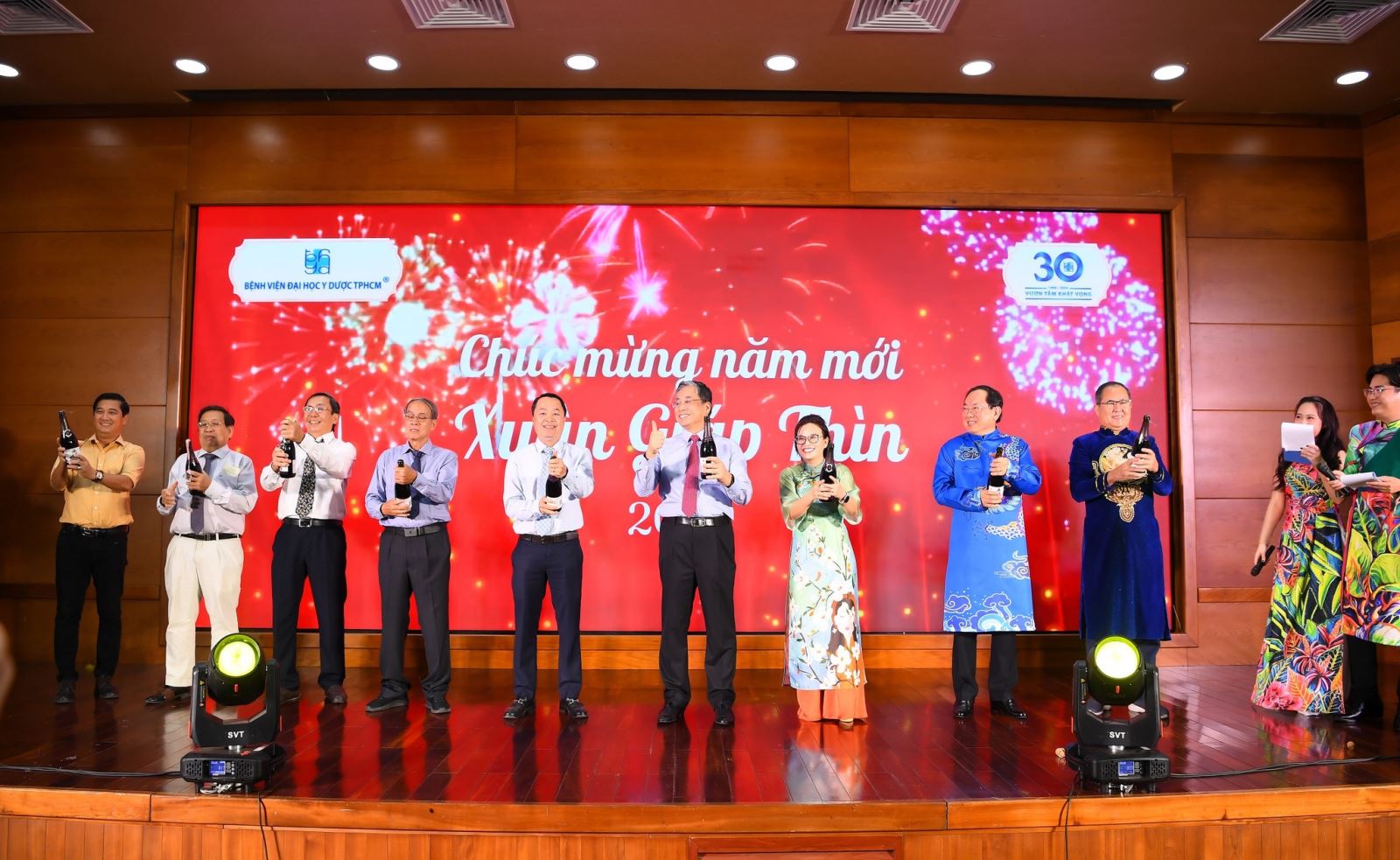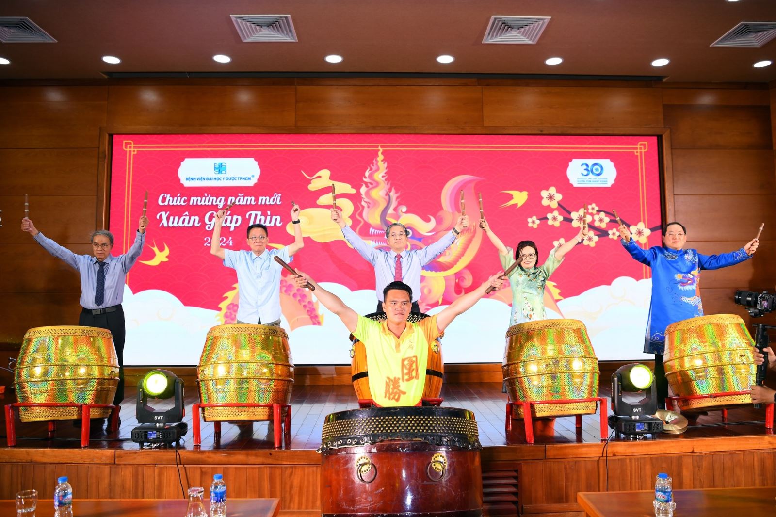 Sau tiết mục đánh trống khai xuân đón chào năm mới nhiều khát vọng và thành công, chia sẻ về định hướng phát triển trong năm 2024, PGS TS BS. Nguyễn Hoàng Bắc – Giám đốc Bệnh viện cho biết: “Hướng đến kỷ niệm 30 năm thành lập, tập thể viên chức, người lao động Bệnh viện phấn đấu xây dựng bệnh viện chất lượng về chuyên môn, dịch vụ, đổi mới công nghệ và quản trị. Chúng ta chấp nhận mọi thách thức, sáng tạo và đổi mới, cùng nhau đưa UMC vươn tầm cao mới và có những bước đột phá trong y học. Nhân dịp năm mới 2024, kính chúc Quý Thầy Cô, viên chức, người lao động cùng gia đình An khang – Thịnh vượng – Sức khỏe – Hạnh phúc.”