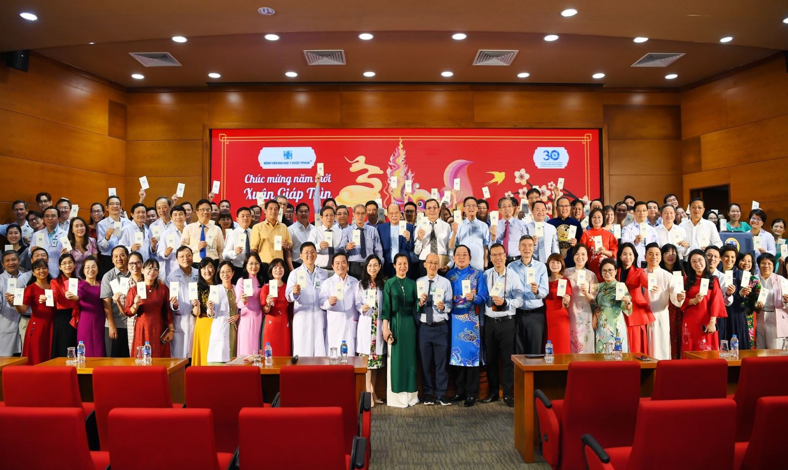 Đồng thời, Bệnh viện đã tổ chức chương trình “Xuân gắn kết, Tết yêu thương” dành cho người bệnh và người nhà người bệnh đang khám, điều trị tại Bệnh viện như lời tri ân của tập thể viên chức, người lao động Bệnh viện gửi đến người bệnh, người nhà người bệnh đã luôn đồng hành cùng Bệnh viện trong suốt 30 năm qua. Bệnh viện cam kết sẽ tiếp tục học tập, nghiên cứu và nỗ lực nâng cao chất lượng khám chữa bệnh, dịch vụ, đáp ứng nhu cầu, sự hài lòng của người bệnh, người nhà người bệnh.