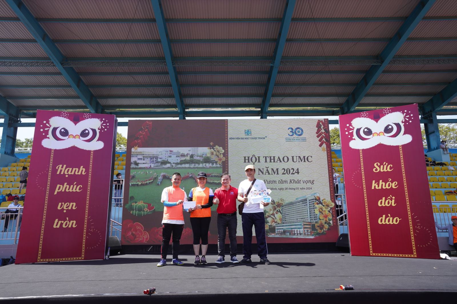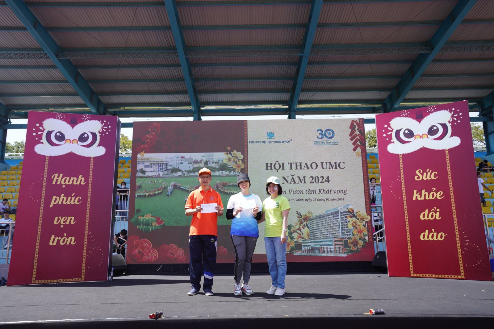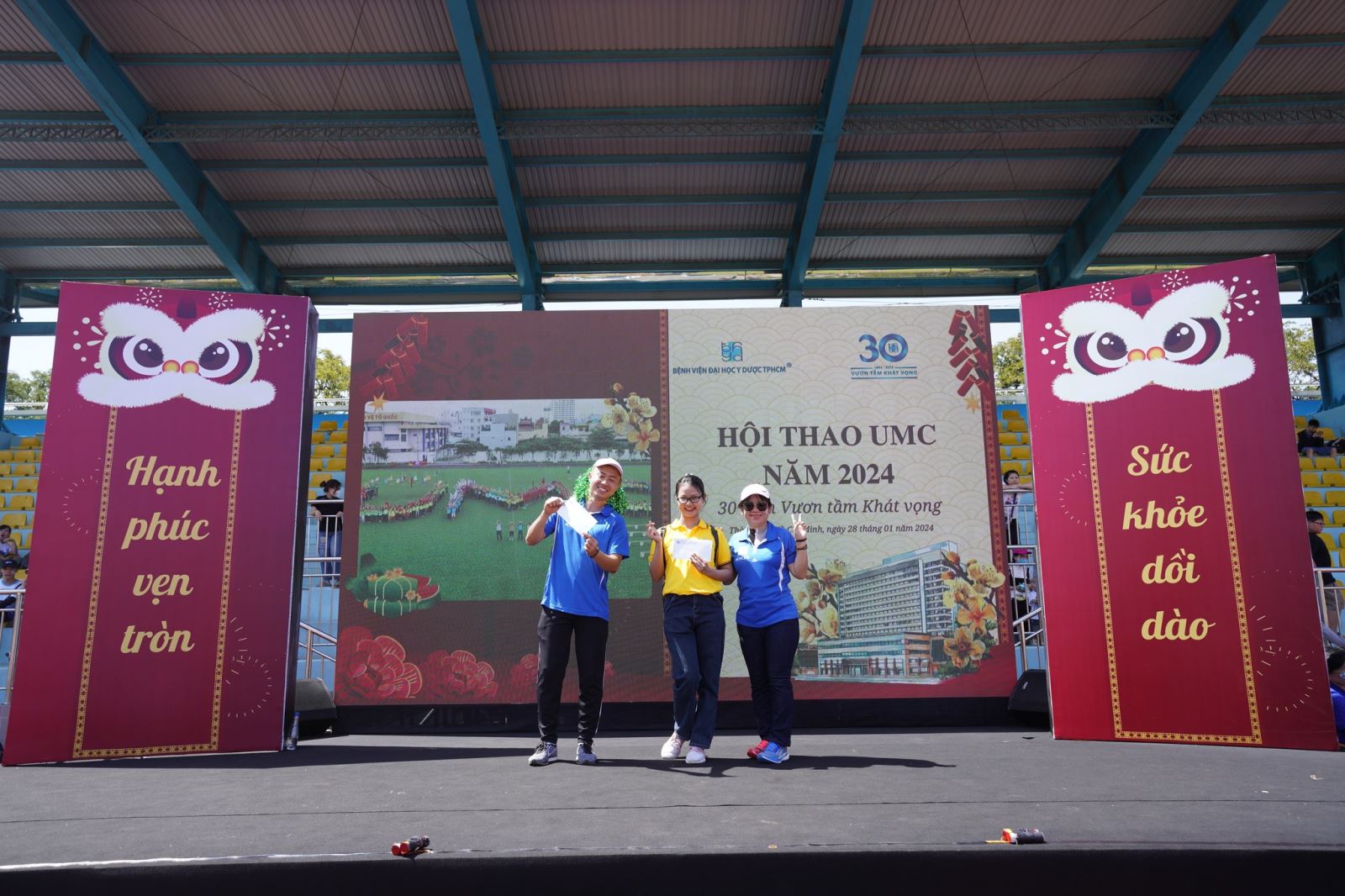 Ngày 28/1/2024, Bệnh viện Đại học Y Dược TPHCM (UMC) đã tổ chức Hội thao “UMC 30 năm vươn tầm khát vọng” năm 2024 tại Sân vận động Quận 8. Đây là hoạt động Kỷ niệm 94 năm Ngày thành lập Đảng Cộng sản Việt Nam và mừng Xuân Giáp Thìn 2024, Kỷ niệm 93 năm Ngày thành lập Đoàn Thanh niên Cộng sản Hồ Chí Minh và hướng tới chào mừng kỷ niệm 30 năm Ngày thành lập Bệnh viện Đại học Y Dược TPHCM.