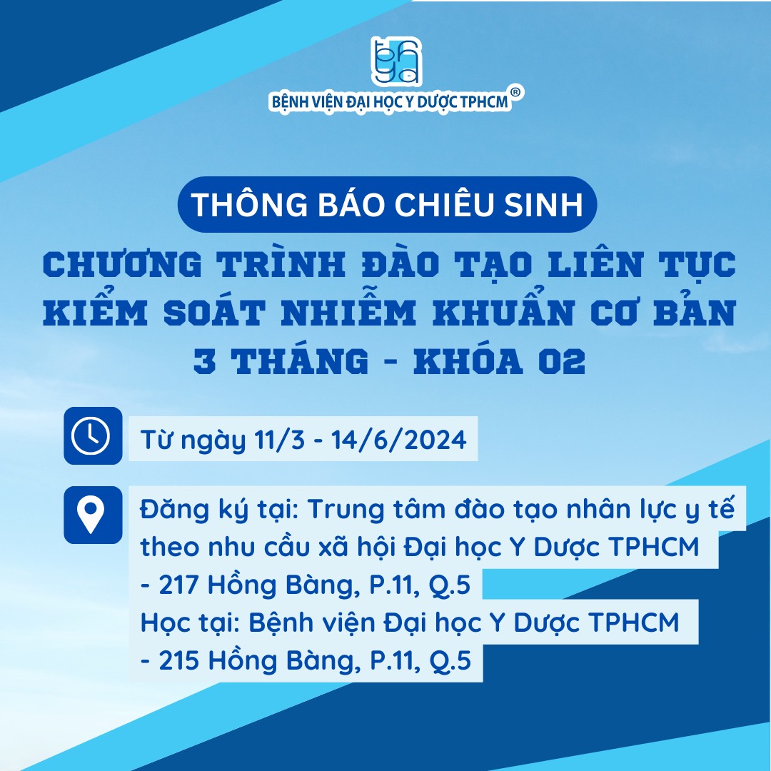 Thông báo chiêu sinh chương trình đào tạo liên tục kiểm soát nhiễm khuẩn cơ bản 3 tháng, khóa 02