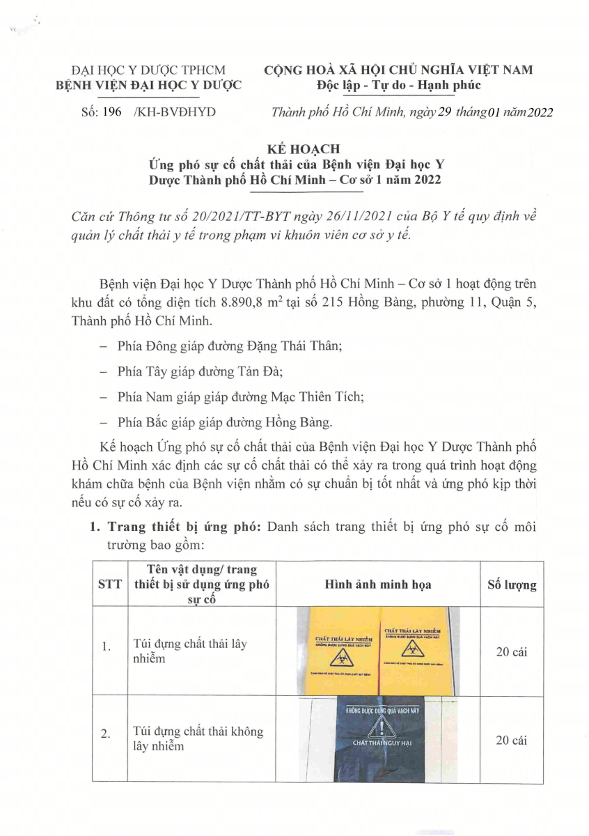 Kế hoạch ứng phó sự cố chất thải Năm 2022