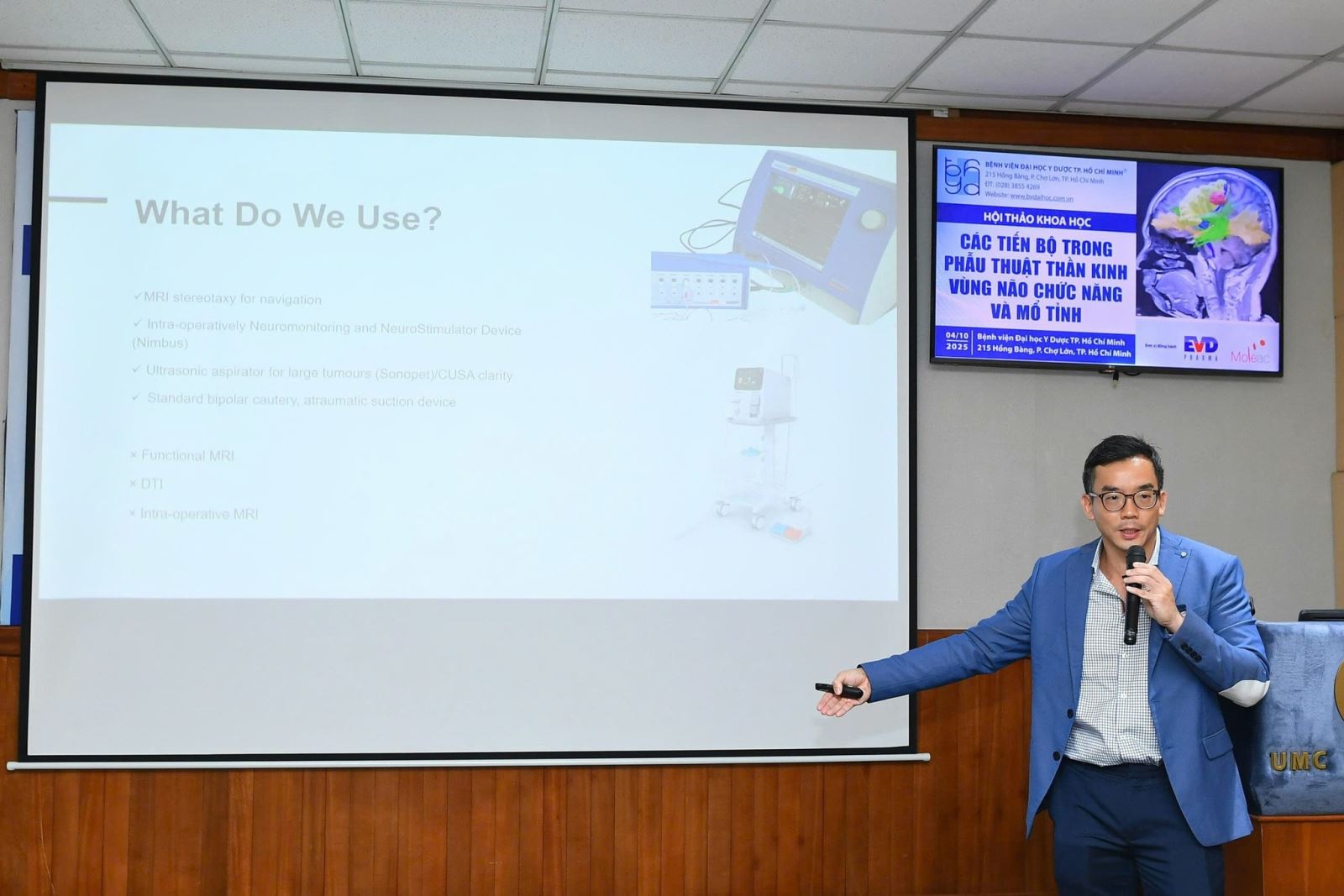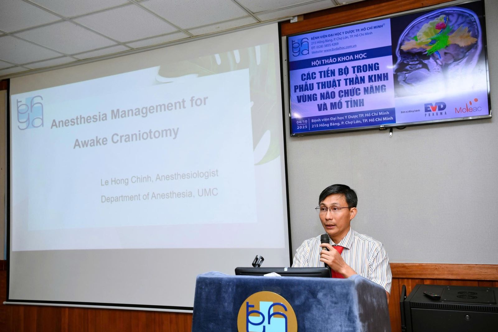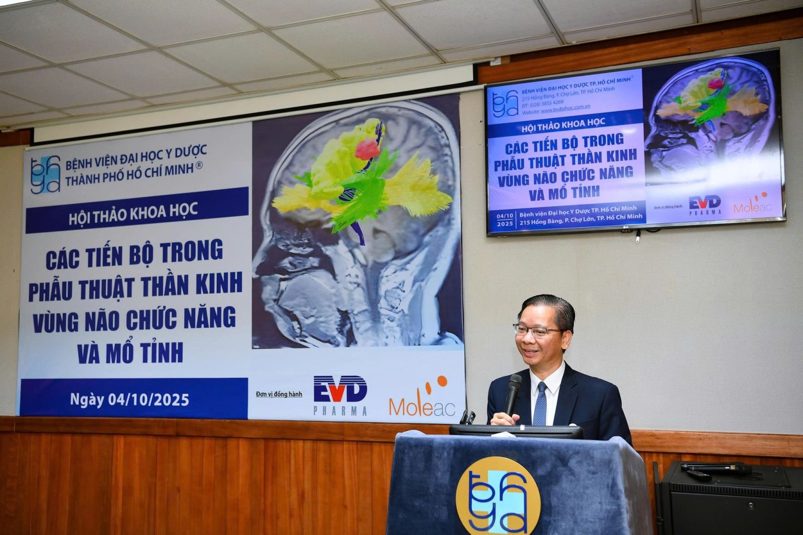 Vào ngày 4/10/2025, Bệnh viện Đại học Y Dược TP. Hồ Chí Minh (BV ĐHYD) đã tổ chức hội thảo với chủ đề “Các tiến bộ trong phẫu thuật thần kinh vùng não chức năng và mổ tỉnh”, thu hút sự quan tâm của nhiều chuyên gia đầu ngành trong và ngoài nước, các phẫu thuật viên thần kinh và bác sĩ trẻ. Đây là sự kiện học thuật quan trọng, nơi cập nhật những kỹ thuật tiên tiến, thảo luận các ca lâm sàng phức tạp và mở rộng hợp tác chuyên môn trong lĩnh vực phẫu thuật thần kinh.