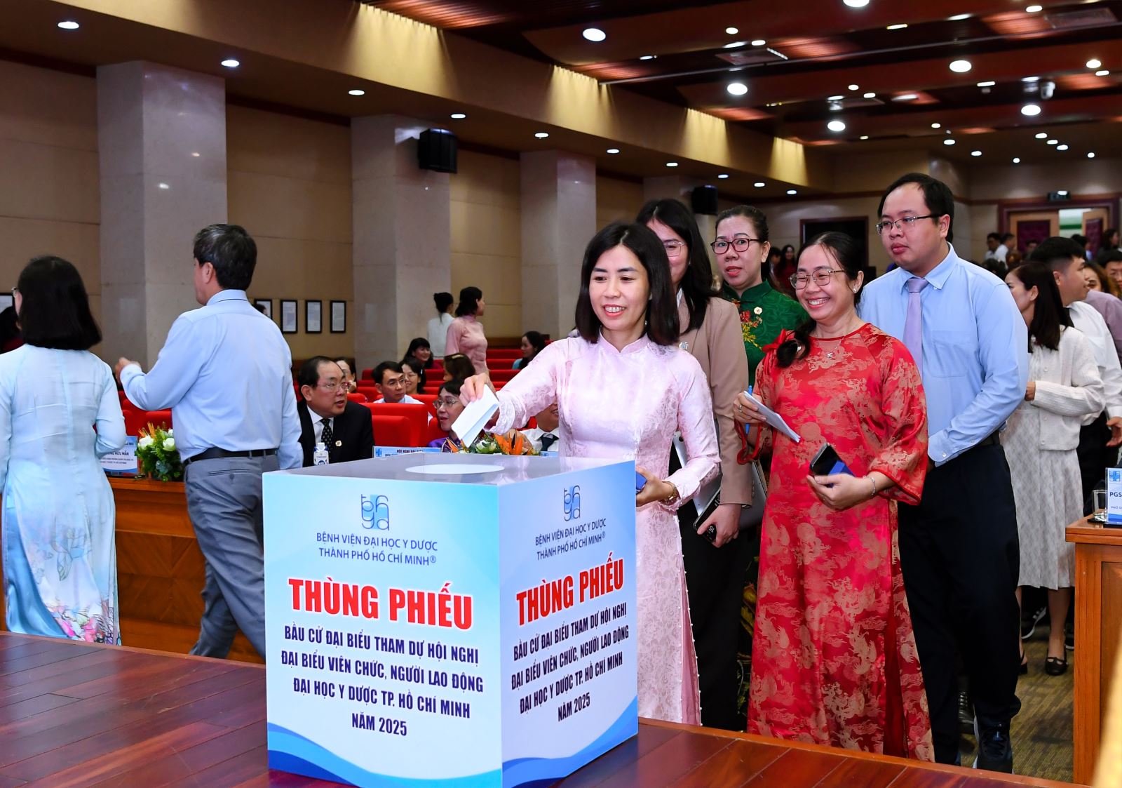 Ngày 5/11/2025, Bệnh viện Đại học Y Dược Thành phố Hồ Chí Minh (Bệnh viện) tổ chức Hội nghị Đại biểu Viên chức - Người lao động (VC-NLĐ) năm 2025, đánh dấu bước chuyển mình mạnh mẽ nhằm tổng kết nhiệm vụ năm học 2024–2025, thảo luận mục tiêu - giải pháp trọng tâm cho năm học mới, tiếp tục thực hiện quy chế dân chủ cơ sở, tạo môi trường làm việc dân chủ, công khai, minh bạch, xây dựng tinh thần đoàn kết, không ngừng nâng cao chất lượng dịch vụ y tế, đào tạo và nghiên cứu khoa học, góp phần xây dựng Bệnh viện ngày càng phát triển bền vững.