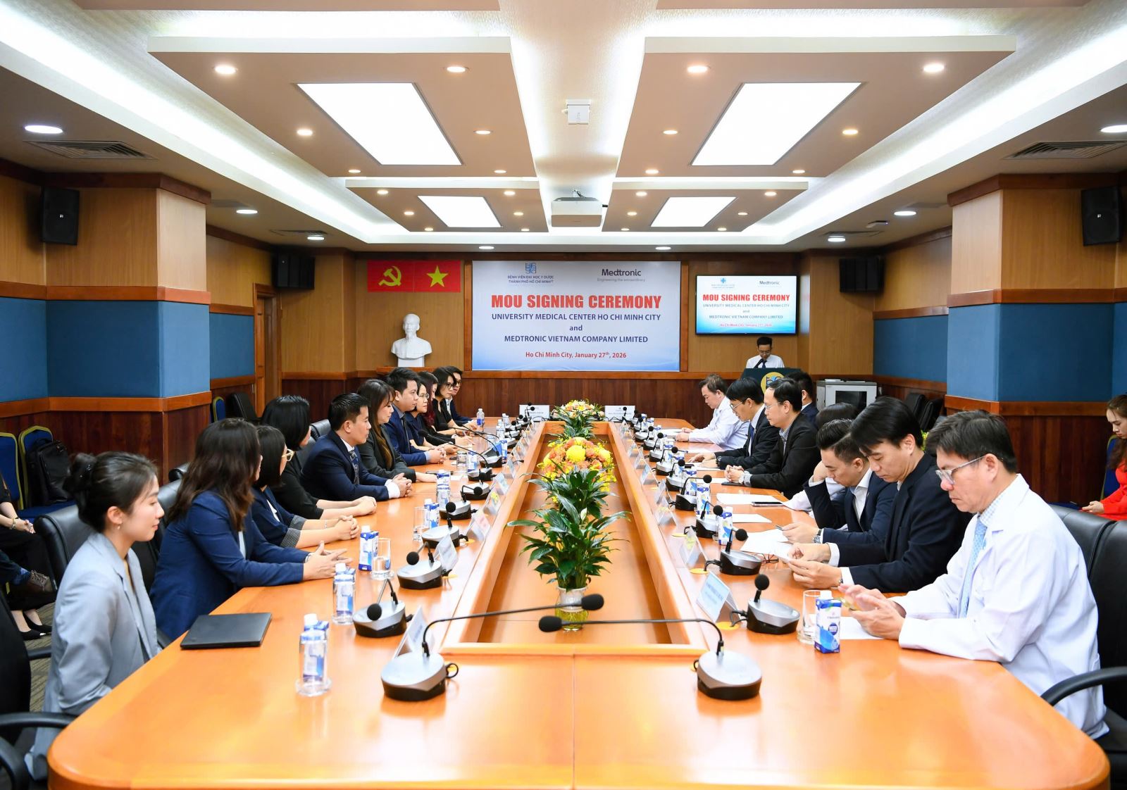 Ngày 27/01/2026, Bệnh viện Đại học Y Dược TP. Hồ Chí Minh (BV ĐHYD) và Công ty TNHH Medtronic Việt Nam tiếp tục ký kết Biên bản ghi nhớ hợp tác (MOU) lần thứ năm. Sự kiện khẳng định mối quan hệ hợp tác chiến lược, bền vững giữa hai đơn vị trong đào tạo, tập huấn y khoa và phát triển chuyên môn sâu, hướng đến nâng cao chất lượng chăm sóc người bệnh tại Việt Nam.