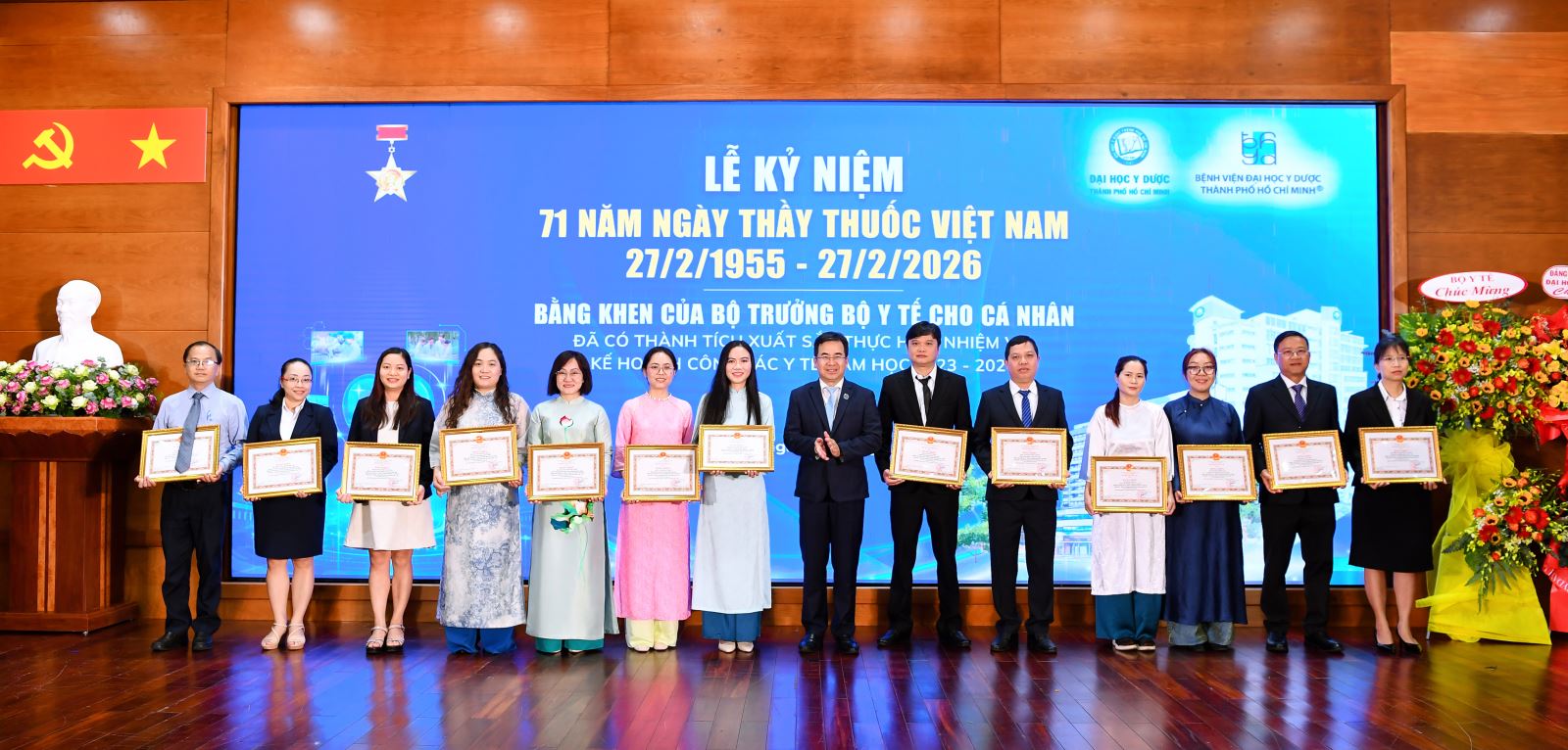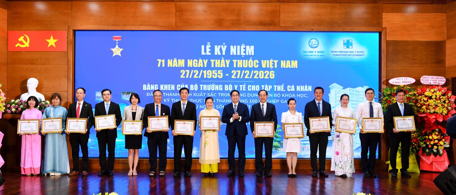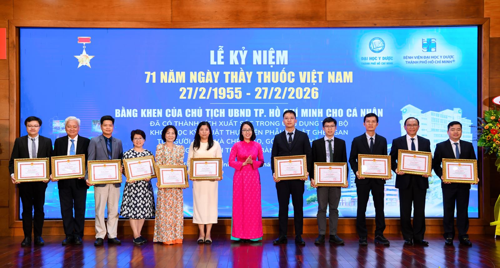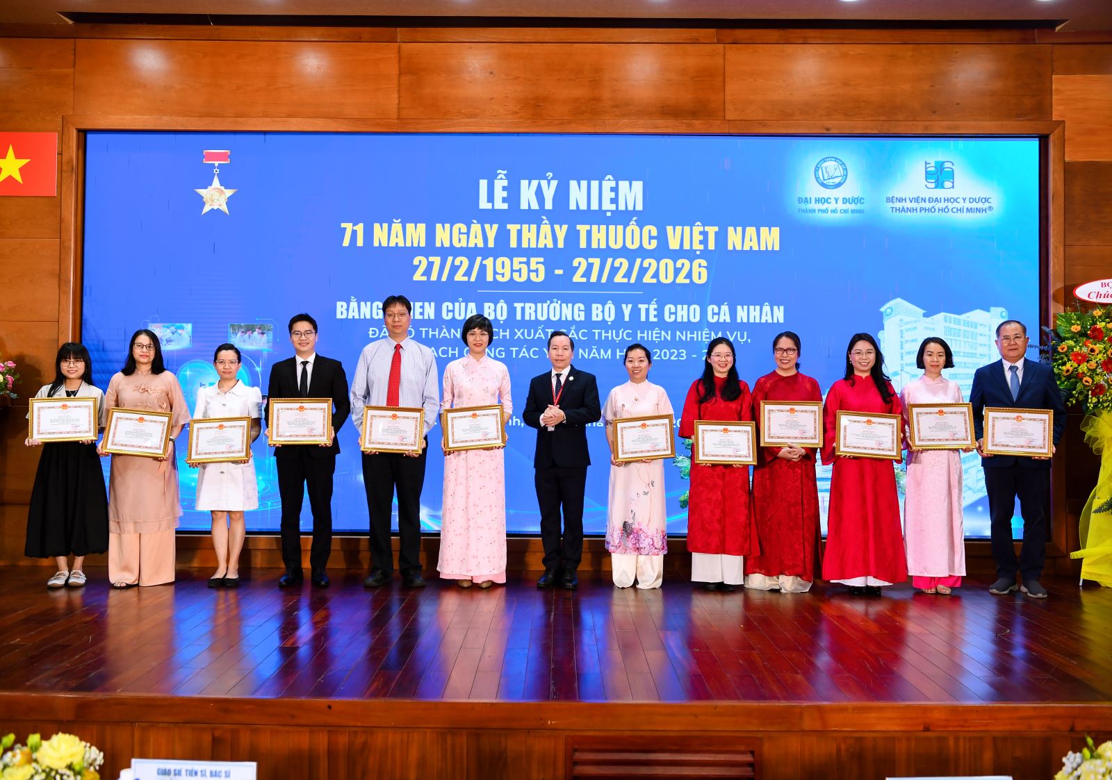 Tại buổi lễ, nhiều tập thể và cá nhân tiêu biểu, có thành tích xuất sắc, đóng góp tích cực cho sự phát triển của Nhà trường và Bệnh viện đã được Thủ tướng Chính phủ, Bộ trưởng Bộ Y tế, Chủ tịch Ủy ban nhân dân Thành phố Hồ Chí Minh tặng bằng khen. Những phần thưởng cao quý không chỉ là sự ghi nhận cho những nỗ lực bền bỉ mà còn tiếp thêm động lực để tập thể Bệnh viện tiếp tục đổi mới, nâng cao chất lượng chuyên môn và phục vụ người bệnh ngày càng tốt hơn.
