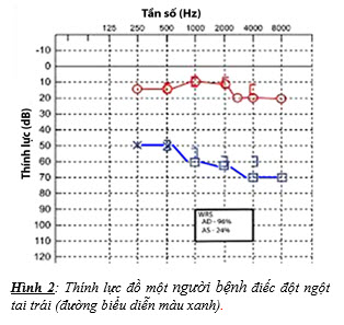 - Giảm thính lực ở 3 tần số âm liên tiếp. (hình 2)