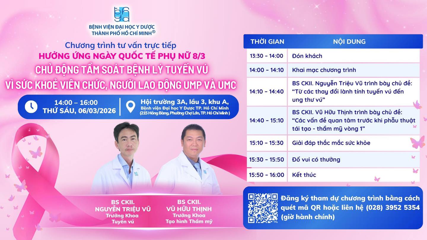 Nhân dịp ngày Quốc tế Phụ nữ 08/3, với mong muốn lan tỏa thông điệp yêu thương và chủ động chăm sóc sức khỏe dành cho chính đội ngũ của mình, Bệnh viện Đại học Y Dược Thành phố Hồ Chí Minh tổ chức Chương trình “Chủ động tầm soát bệnh lý tuyến vú vì sức khỏe viên chức, người lao động UMP và UMC”