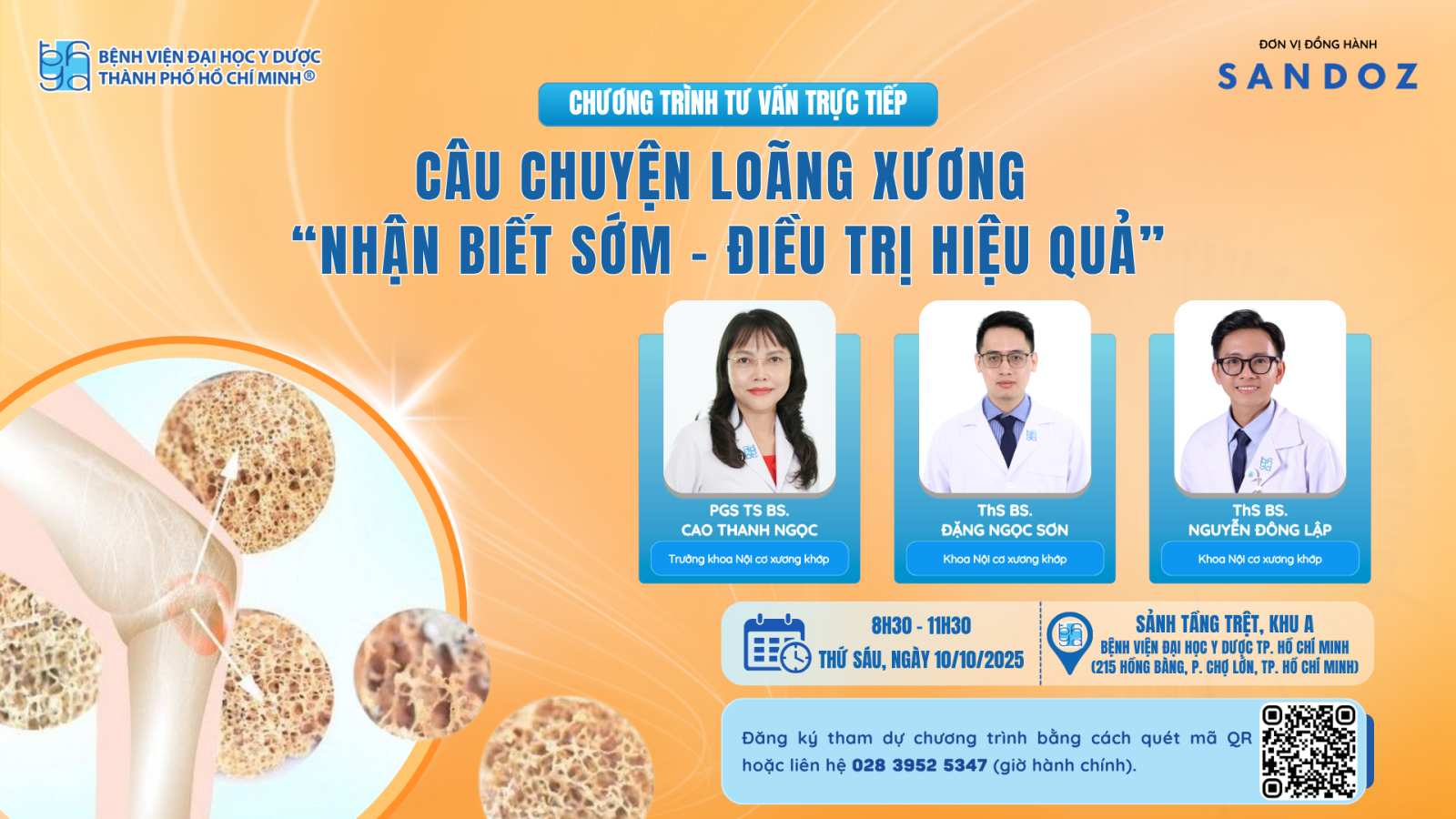 Nhằm hưởng ứng Ngày Loãng xương Thế giới 2025, Bệnh viện Đại học Y Dược TP. Hồ Chí Minh tổ chức chương trình tư vấn trực tiếp chủ đề Câu chuyện loãng xương “Nhận biết sớm - điều trị hiệu quả”
